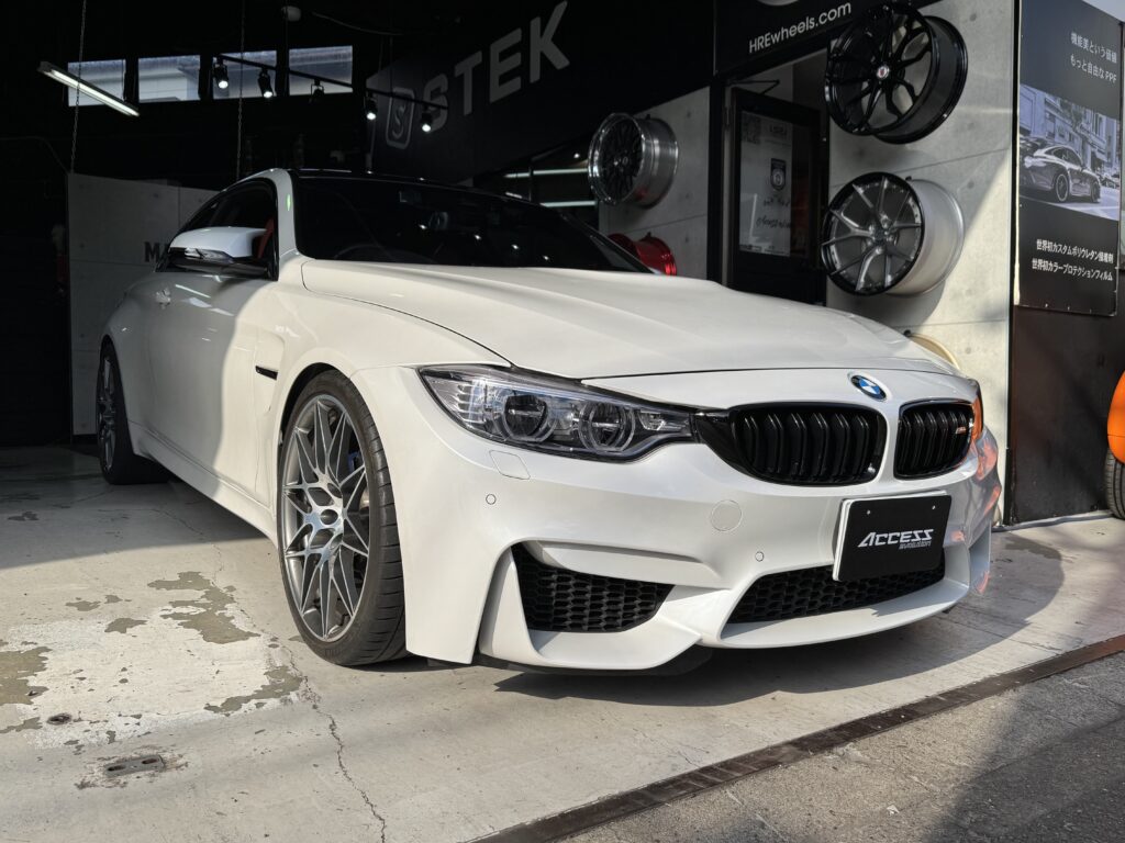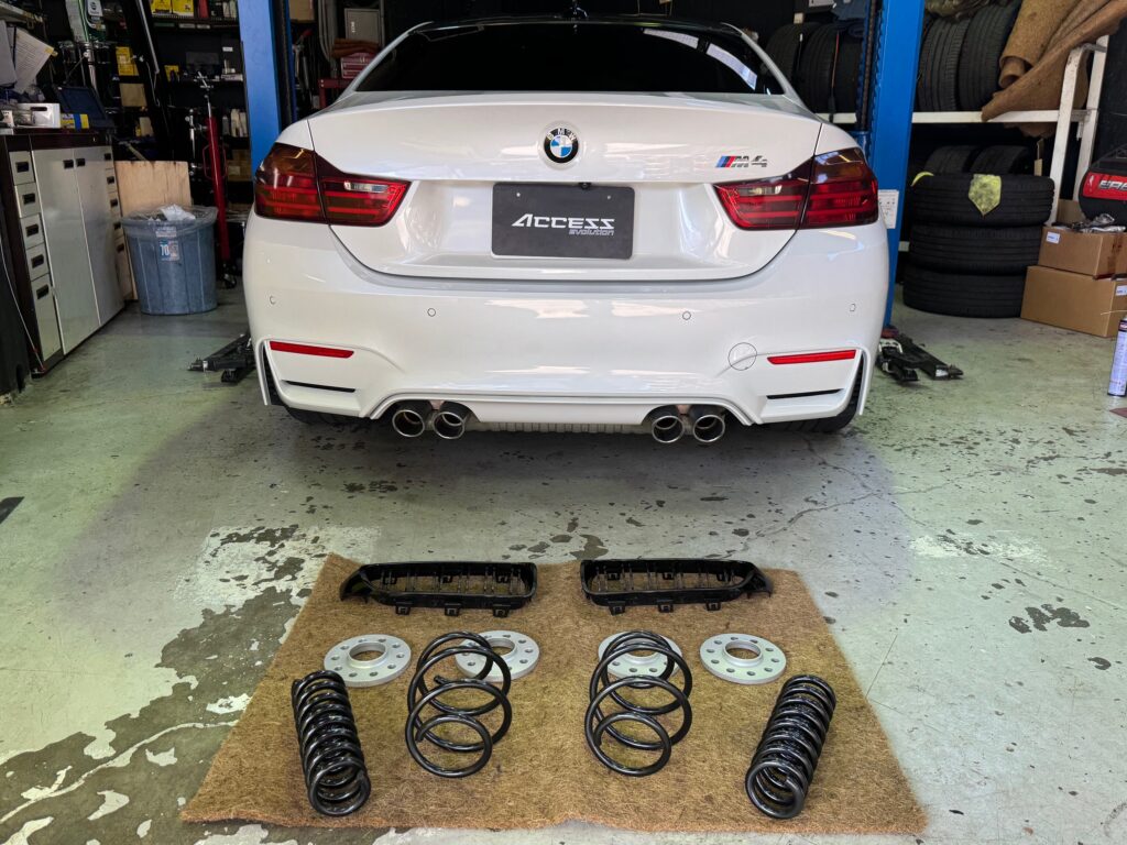 今回はF82 M4にアイバッハ ダウンサス、H&Rスペーサー、Future designキドニーグリルをお取り付けさせていただきました。