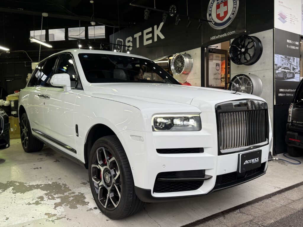 今回はロールスロイス カリナンのマフラー交換や購入時からボディ下部に貼ってあったラッピングフィルムを劣化していたため剝がさせて頂きました。何もかもが高級です( ^ω^)・・・